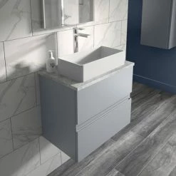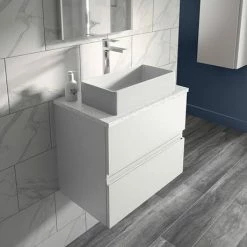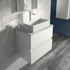 Hudson Reed Urban 600mm Satin White Vanity Unit – Wall Hung 2 Drawer Unit With Grey Worktop