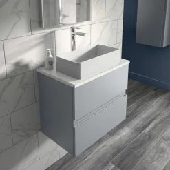 Hudson Reed Urban 600mm Satin Grey Vanity Unit – Wall Hung 2 Drawer Unit With White Worktop