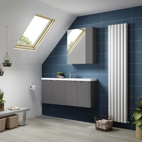 Hudson Reed 1200mm Gloss Grey Wall Hung Compact Combination Unit (600 Vanity x 2)