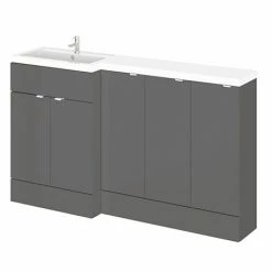 Hudson Reed Fusion 1500mm Gloss Grey Combination Unit (600 Vanity + 300 Base Unit x 3)