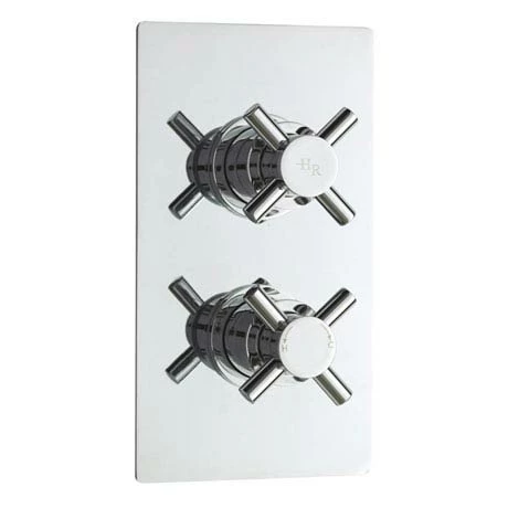 Hudson Reed Kristal Twin Concealed Thermostatic Shower Valve features a clean, minimalist body with a symmetrical crosshead handle design, to provide a stylish yet functional range for any bathroom. A thermostatically controlled shower with separate controls for the flow & temperature.