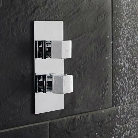 The Kubix twin concealed thermostatic shower valve from Hudson Reed is a luxury showering product complete with diverter. This Concealed Thermostatic Twin Shower Valve offers thermostatic showering via two easy-to-operate controls.