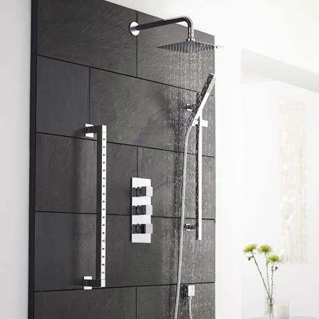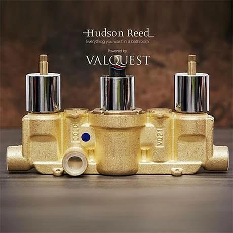 Kubix Triple Concealed Thermostatic Shower Valve with Divertor from Hudson Reed. Suitable for all types of plumbing installation this shower valve has the added safety benefit of a built in anti scald device should the cold water supply fail.