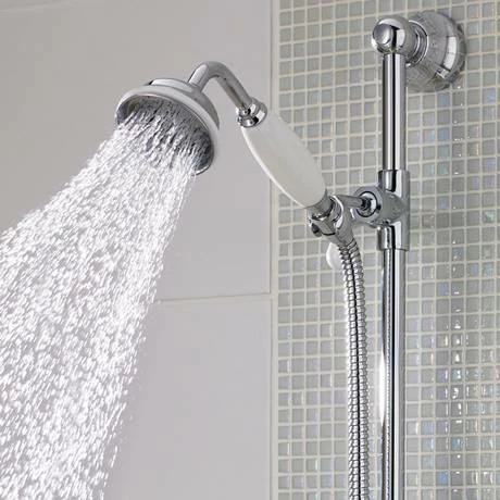 Hudson Reed have a long tradition of making high quality bathroom products. This Large traditional shower handset is a beautifully crafted additional handset, finished in chrome with a white ceramic handle.