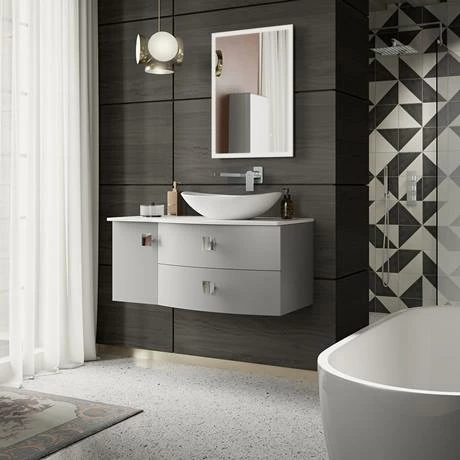 Hudson Reed Sarenna Dove Grey 1000mm Wall Hung Cabinet & White Marble Top