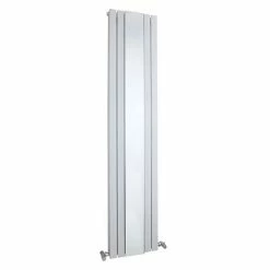 The white finished Sloane double panel designer radiator with mirror from Hudson Reed, a striking modern design complete with mirror to reflect your style. Add a touch of classical elegance to any room with the vertical simplicity of the Sloane designer radiator. Make a statement with our 1800 x 381mm designer radiator, guaranteed to be the focal point of any setting. Hudson Reed provide luxury designer bathroom products at desirable prices, combining comfort and reliability with practicality and quality craftsmanship.