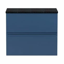 Hudson Reed Urban 600mm Satin Blue Vanity Unit – Wall Hung 2 Drawer Unit with Sparkling Black Quartz Effect Worktop – URB304LSB