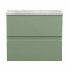 Hudson Reed Urban 600mm Satin Green Vanity Unit – Wall Hung 2 Drawer Unit with Bellato Grey Concrete Effect – URB804LBG