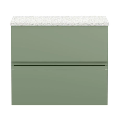 Hudson Reed Urban 600mm Satin Green Vanity Unit – Wall Hung 2 Drawer Unit with Sparkling White Quartz Effect Worktop