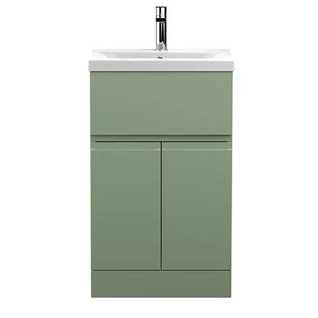 Hudson Reed Urban Satin Green 500mm Floor Standing 2-Door/Drawer Vanity Unit – URB801A