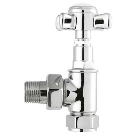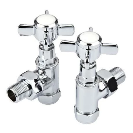Pair of matching angled Victorian chrome radiator valves. Designed to complement our range of heated towel rails. Beautifully engineered to integrate into any traditional bathroom.