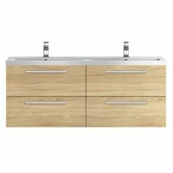 Hudson Reed 1440mm Natural Oak Quartet Double Basin Vanity Unit