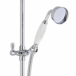 The Hudson Reed Victorian Grand Rigid Riser Kit with Shower Rose – AM312 has a 8″ in diameter shower rose. It has a built-in diverter so you can switch between the fixed head or hand held shower. The turn of the century evokes a feeling of greatness, an era when engineering was the world’s driving force, and this sense of achievement is replicated in our collection of traditional styled rigid riser shower kits.